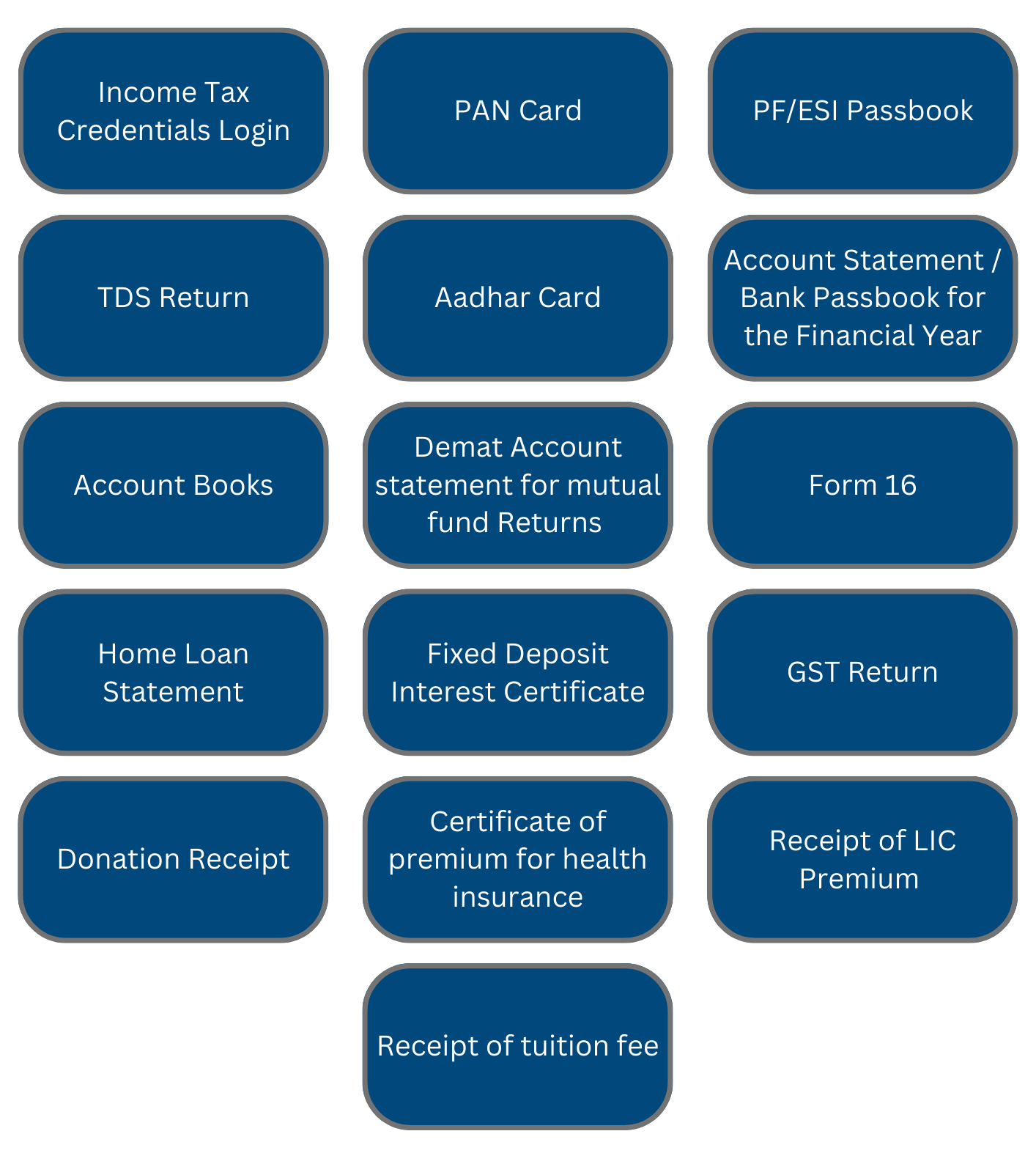 The following documents are required for ITR filing in Banswara: